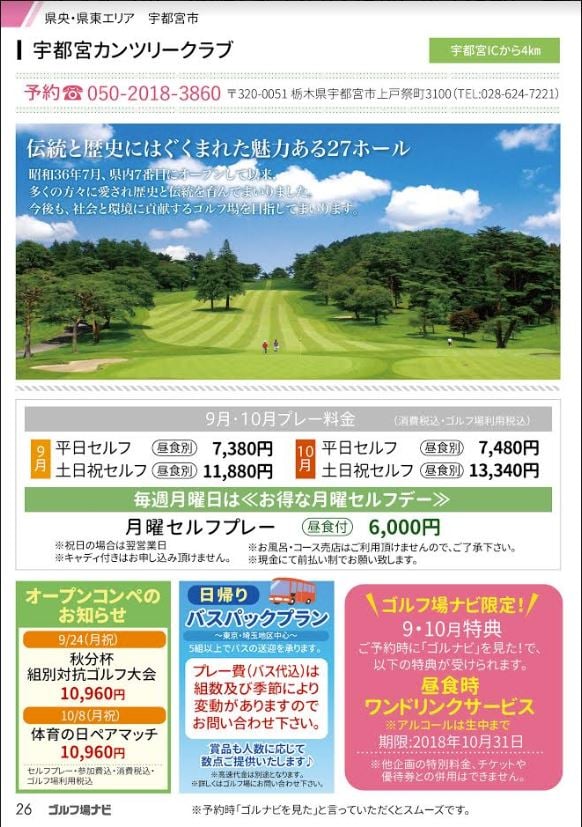 9月・10月プレー料金 (消費税込・ゴルフ利用税込)